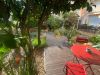 Nous avons installé une terrasse en composite pour accueillir une table pour deux à l'ombre d'un oranger.